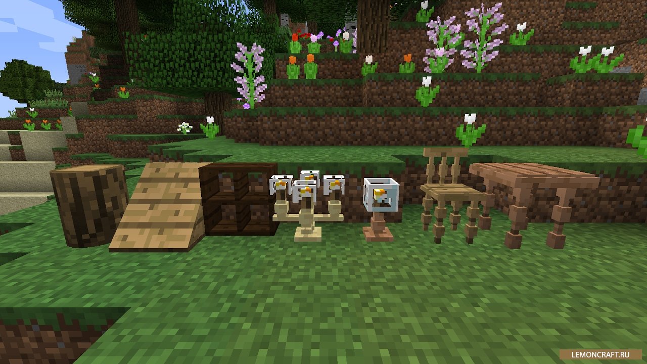 Мод Missing Pieces позволит изменить интерьер вашего дома и окружающего его участка. С добовление новых блоков вы сможуте сделать покатые крыши, поставить столбы, установить в дому стулья, столы, полки и многое другое.